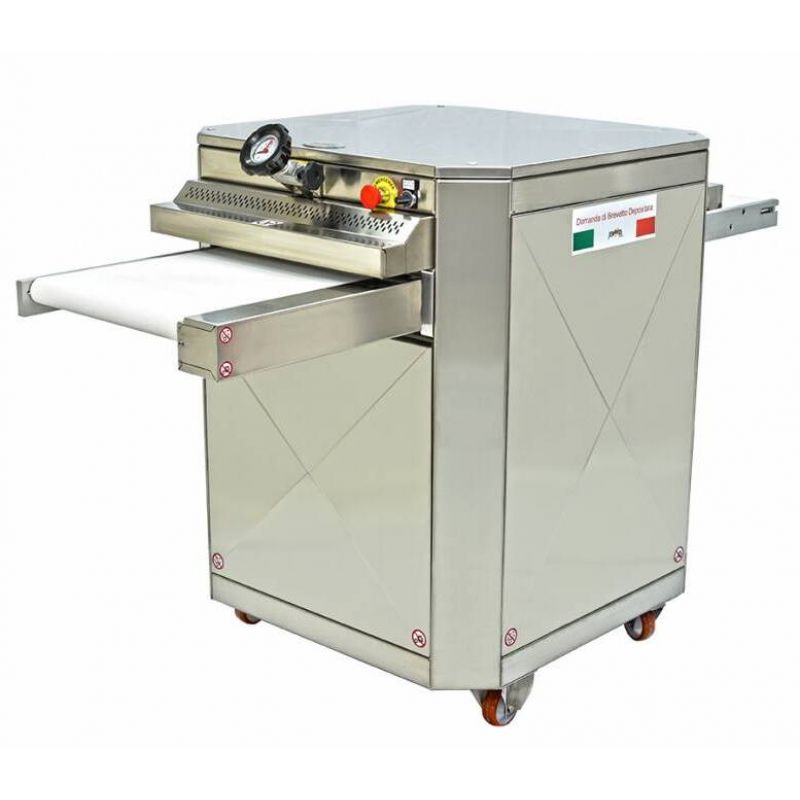 Машина для горизонтальной резки NewDay T40S - это профессиональное оборудование итальянского производства, созданное для точной и аккуратной горизонтальной нарезки хлебобулочных и кондитерских изделий. Идеально подходит для работы с бисквитами, булочками для бургеров, бейглами, чиабаттой, хот-догами, фокаччей и другими изделиями, требующими идеально ровного разреза. Благодаря возвратно-поступательному движению лезвия и плавной регулировке скорости с помощью инвертора, машина обеспечивает безупречное качество среза при сохранении структуры и свежести продукта. Простая регулировка высоты конвейерных лент маховиком позволяет получать одинаково точный результат при работе с изделиями разной толщины — от 5 до 60 мм (по запросу до 90 мм). Корпус из нержавеющей стали гарантирует долговечность и гигиеничность, а наличие колёс облегчает перемещение по производству. Дополнительно оборудование можно оснастить до трёх лезвий для многослойной нарезки за один проход. Модель T40S сочетает в себе итальянскую надёжность, производительность и простоту эксплуатации, обеспечивая идеальную нарезку бисквитов и булочек в пекарнях, кондитерских и на производственных линиях HoReCa.Характеристики
