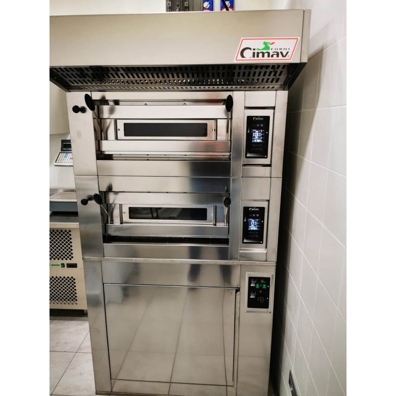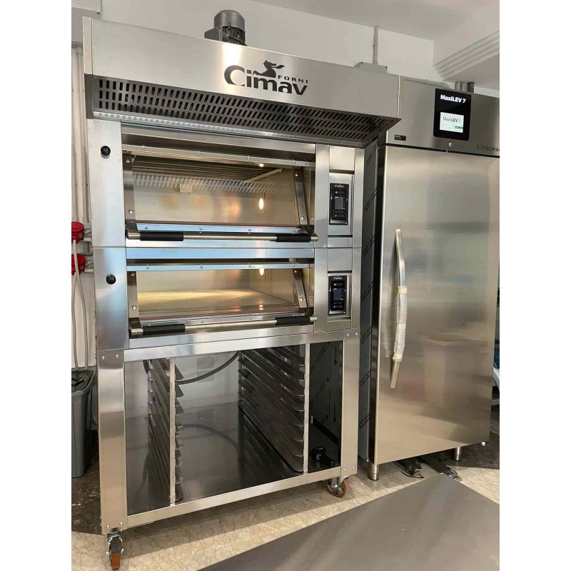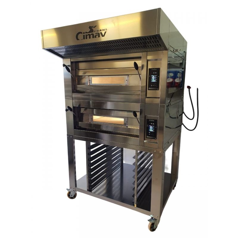 Печь модульная подовая с вытяжкой и подставкой Cimav модель 2MD-B18/25 включает две независимые электрические камеры MD-B25 и MD-B18, вытяжку без мотора с фирменной надписью Cimav, прочную подставку высотой 91 см открытого типа (может быть 61 см, по необходимости-с направляющими под противень) и комплект колес для мобильности. Камера MD-B25 (внутренние размеры 62х90х25 см) и камера MD-B18 (62х90х18 см) рассчитаны на одновременную работу с двумя противнями 60х40 см, расположенными один за другим, что позволяет эффективно выстраивать производственный поток. Конструкция полностью выполнена из нержавеющей стали AISI 304 — материала, отвечающего требованиям интенсивной эксплуатации и санитарных норм HoReCa, а под из цементного камня толщиной 20 мм обеспечивает равномерное накопление и отдачу тепла для выпечки хлеба, тестовых изделий и пиццы как на противнях, так и непосредственно на поверхности. Температура выпечки до 300С , опция "pizza" позволяет достигать температуру 400С, необходимую для выпечки пиццы. Полностью стеклянные дверцы с открыванием вверх гарантируют удобный визуальный контроль без потери температуры, а встроенные парогенераторы создают оптимальный уровень пара для формирования идеальной корки и структуры мякиша; в модуле MD-B18 дополнительно реализованы нагревательные элементы для режима пиццы. Цифровая панель управления с клавишами и 2,8-дюймовым графическим дисплеем позволяет независимо регулировать мощность верхних и нижних ТЭНов в процентном соотношении (в том числе работать на 50% от установленной мощности) либо управлять температурой каждого контура отдельно, обеспечивая точную термодинамическую настройку под конкретный продукт; предусмотрены недельное программирование, таймер приготовления и до 50 пользовательских программ в памяти контроллера. Максимальная мощность камеры MD-B25 — 6 кВт (экономичный режим 3 кВт) +1,5 кВт парогенератор, MD-B18 — 7,5 кВт (экономичный режим 3,75 кВт)+1,5 кВт парогенератор, что делает оборудование энергоэффективным при высоких нагрузках. Внешние габариты печи составляют 100х(129+14) см (+23 см выступ вытяжки) при общей высоте 201 см, а эргономичная высота расположения камер (1-й этаж — 104 см, 2-й — 144 см) повышает комфорт работы персонала. В зависимости от запроса клиента модульная печь может быть укомплектована расстоечной камерой вместо подставки. Cimav- это профессиональная модульная система, которая масштабируется под задачи производства, оптимизирует энергопотребление и гарантирует стабильно высокий результат в каждой партии выпечки.Характеристики