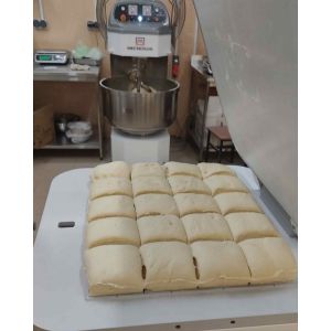 Для пекарни супермаркета было подобрано современное хлебопекарное оборудование, позволяющее автоматизировать ключевые этапы производства и гарантировать стабильное качество продукции. В состав линии вошёл мукопросеиватель, а также дозатор воды Mac Pan MA и спиральный тестомес Mecnosud SP-80, рассчитанный на интенсивную эксплуатацию. Для формования и расстойки тестовых заготовок были установлены полуавтоматический тестоделитель Bassanina SQ20 SA, обеспечивающий точное деление теста, и расстоечная камера Bassanina 4060.2.1 с полом PCR4060.2.1, создающая оптимальные условия для расстойки теста.