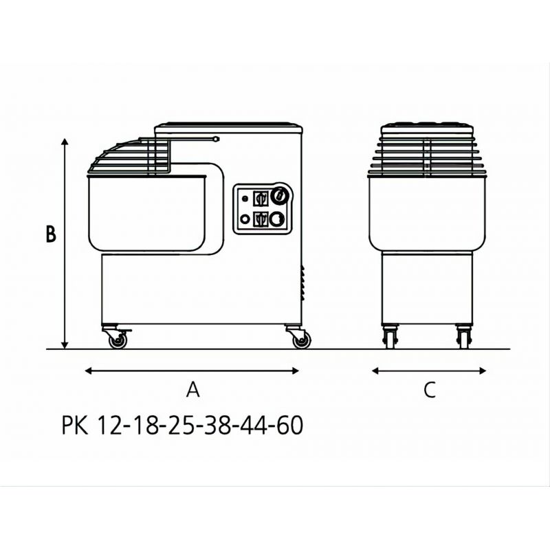 Спиральный тестомес на 33 литра серии PK итальянского производителя Mecnosud модель PK25D укомплектован вместительной дежой объемом 33 литра, что позволяет замешивать от 4 до 22 кг теста за один цикл, обеспечивая оптимальную загрузку и эффективность работы даже при интенсивной эксплуатации. Диаметр чаши 400 мм и высота 260 мм и спиральная система гарантирует однородную структуру теста без перегрева, что особенно важно для дрожжевых и заготовок для пиццы. Тестомес оборудован мощным трехфазным двигателем с двумя скоростями на 1 и 1,4 кВт, при этом доступны модели под заказ с однофазным двигателем и одной скоростью. Все ключевые элементы, включая чашу, спираль и вал, выполнены из высококачественной нержавеющей стали, что гарантирует долговечность, устойчивость к коррозии и соответствие санитарным нормам пищевого производства, а защитный кожух из нержавеющей стали обеспечивает безопасность оператора во время работы. Надежная система цепного привода с мотор-редуктором обеспечивает стабильную передачу крутящего момента и снижает износ узлов, продлевая срок службы оборудования. Прочная рама из толстой нержавеющей стали выдерживает высокие нагрузки и интенсивную эксплуатацию, при этом покрытие выполнено с использованием нетоксичных порошковых красок, безопасных для пищевой среды. Тестомес поставляется в комплекте с колесами с тормозом, что обеспечивает мобильность и удобство перемещения по кухне.Характеристики