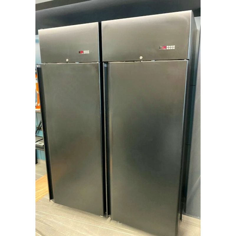 Морозильна шафа чорного кольору Coldline A60/1B серії Master 600 забезпечує температурний режим у діапазоні від -18 до -22 C, що ідеально підходить для тривалого зберігання заморожених продуктів із збереженням їхньої якості та структури. Корпус виконаний з пофарбованої високоякісної нержавіючої сталі AISI 304, що гарантує довговічність, стійкість до корозії та відповідність санітарним нормам, а задня стінка та технічні елементи виготовлені з оцинкованої пофарбованої сталі для додаткової міцності конструкції. Внутрішній простір об'ємом 512 літрів брутто грамотно організовано та комплектується трьома полицями розміром 53х53 см з пластиковим покриттям і напрямними, що дозволяє зручно розміщувати продукцію та оптимізувати зберігання. Електронний дисплей, інтегрований урівень з панеллю, забезпечує точний контроль температури та зручне керування, а система автоматичного розморожування гарячим газом знижує необхідність у ручному обслуговуванні та підвищує енергоефективність обладнання. Однодверна конструкція з самозакривним механізмом, можливістю перенавішування та фіксацією під кутом 105 забезпечує ергономіку в роботі навіть в обмеженому просторі, а магнітний трикамерний ущільнювач легко замінюється та гарантує герметичність. Додаткову зручність створюють LED-підсвічування внутрішньої камери, замок з ключем для контролю доступу, заокруглені внутрішні кути для швидкого очищення та міцна ручка з нержавіючої сталі товщиною 2 мм. Шафа оснащена вбудованим холодильним агрегатом на екологічному холодоагенті R290, що робить її сучасним та енергоефективним рішенням, а регульовані ніжки з нержавіючої сталі дозволяють адаптувати обладнання до будь-яких умов експлуатації. Морозильна шафа Coldline A60/1B — це стильний вибір для бізнесу, який цінує надійність, гігієнічність та професійний рівень зберігання продуктів.Характеристики