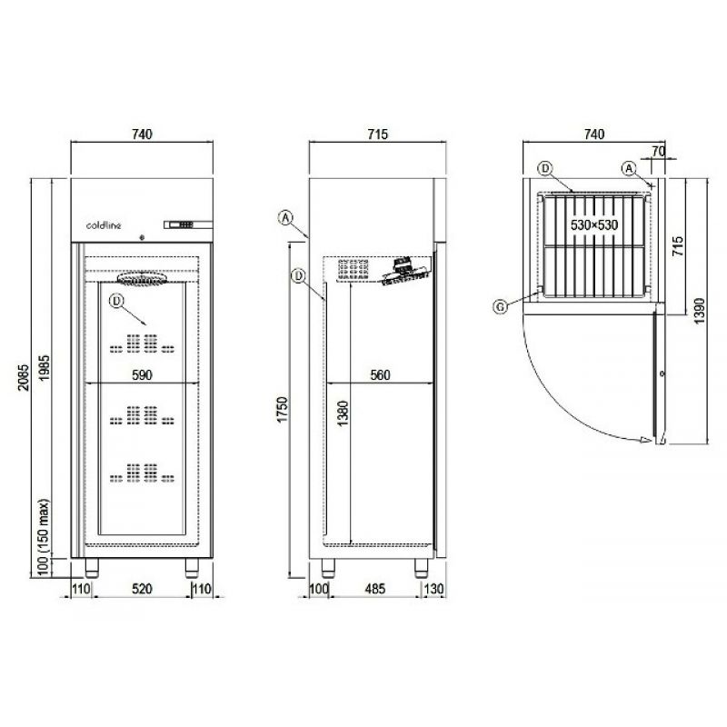 Основні характеристики Морозильна шафа Coldline A60/1B 1 двері чорна. Вага брутто, кг - 150, Вага нетто, кг - 130, Вид обладнання - Морозильна шафа, Гарантійний термін, міс - 12, Джерело живлення - Електроенергія, Кількість дверей - 1, Кількість полиць - 3, Колір корпусу - Чорний, Країна виробник - Італія, Матеріал корпусу - Нержавіюча сталь, Матеріал робочої поверхні - Нержавіюча сталь, Напруга живлення, В - 220, Об'єм, л - 512, Панель управління - Електронна, Потужність, кВт - 0,81, Розмір - 740х715х2085, Світлодіодна підсвітка камери - Так, Серія - Master 600, Температурний режим, С - -18...-22, Тип двері - Глуха розстібна, Тип охолодження - Вентильоване, Тип установки - Підлоговий, інші характеристики за телефоном: +38(067) 5710158.