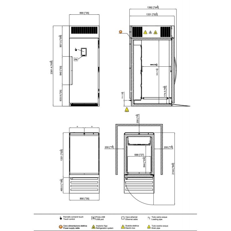 Шафа шокової заморозки під візок Tecnomac CT 20.120 R290 забезпечує шокове охолодження продукту з +90 C до +3 C об'ємом до 120 кг (випробування проводилися за методикою Castel MAC на приготованій яловичині) і заморожування з +90 C до -18 C до 80 кг, що дозволяє швидко проходити зону бактеріального ризику і зберігати структуру, смак, соковитість і органолептичні характеристики готових страв і напівфабрикатів; фактична потужність за циклами становить 120 кг при охолодженні (+65 C +10 C) за 120 хвилин і 80 кг при заморожуванні (+65 C -18 C) за 270 хвилин. Діапазон робочих температур від -40 C до +5 C робить шокер універсальним інструментом для шокової заморозки, глибокої заморозки, делікатного розморожування і подальшого зберігання, а чотири основні функції, реалізовані через 7-дюймовий сенсорний дисплей високої роздільної здатності на дверцятах, забезпечують точне управління всіма етапами технологічного циклу; передбачений USB-порт для завантаження і вивантаження рецептів, оновлення прошивки і налаштування індивідуальних програм, що особливо важливо для стандартизації процесів в мережевих закладах. Шокер розрахований на установку одного візка (візок не входить в комплект поставки) формату GN 1/1 або GN 2/1, що значно спрощує логістику всередині кухні і прискорює завантаження/розвантаження продукції без перекладання гастроємностей. Конструкція орієнтована на інтенсивну експлуатацію: ізоляція з пінополіуретану високої щільності (близько 42 кг/м3) товщиною 70 мм (дно — 60 мм) мінімізує тепловтрати і знижує енергоспоживання до 0,08 кВт/кг за цикл шокового охолодження і 0,216 кВт/кг за цикл заморожування; електронні вентилятори останнього покоління з п'ятьма швидкостями забезпечують рівномірний розподіл холодного повітря і точний контроль температури в камері. Екологічно чистий холодоагент R290 гарантує високу енергоефективність і відповідність сучасним екологічним стандартам. Можливість повного огляду камери спрощує санітарну обробку і підтримку гігієни на рівні HACCP, передбачений піддон для конденсату, ручне розвантаження води при розморожуванні і система розморожування з відкритими дверима; при необхідності доступна опція озонової дезінфекції і виконання з лівосторонніми розпашними дверима. Шафа шокової заморозки Tecnomac CT 20.120 R290 — це надійне рішення для оптимізації виробничих процесів, скорочення списань, збільшення терміну зберігання продукції і підвищення маржинальності бізнесу за рахунок точного контролю холодового ланцюга і максимальної гнучкості щоденної роботи кухні.Характеристики