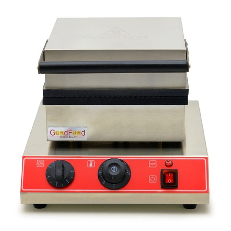 Вафельниця для плоских вафель GoodFood WB256TS призначена для випікання квадратних плоских вафель розміром 256?256 мм, які легко трансформуються у трубочки або конуси для десертів, морозива та стрітфуду, що робить пристрій універсальним рішенням для кафе, фуд-кортів, ресторанів і точок вуличної їжі. Корпус із нержавіючої сталі гарантує високу міцність, стійкість до корозії та простоту в догляді, що особливо важливо для дотримання санітарних норм на професійній кухні. Робоча поверхня оснащена антипригарним покриттям, завдяки якому тісто не прилипає, а готові вироби легко знімаються без пошкоджень, зберігаючи ідеальну форму та привабливий зовнішній вигляд. Нагрів здійснюється одночасно зверху і знизу, що забезпечує рівномірне пропікання вафель по всій площі та виключає необхідність перевертання, значно прискорюючи процес приготування. Вбудований терморегулятор із діапазоном від 50 до 300 °C дозволяє точно налаштовувати температуру під різні рецептури, а таймер до 5 хвилин допомагає контролювати час випікання та отримувати стабільно якісний результат без ризику пересушування або недопікання. Настільний формат встановлення робить вафельницю зручною для розміщення навіть на обмеженому робочому просторі, а стійка конструкція забезпечує безпеку під час експлуатації.Характеристики