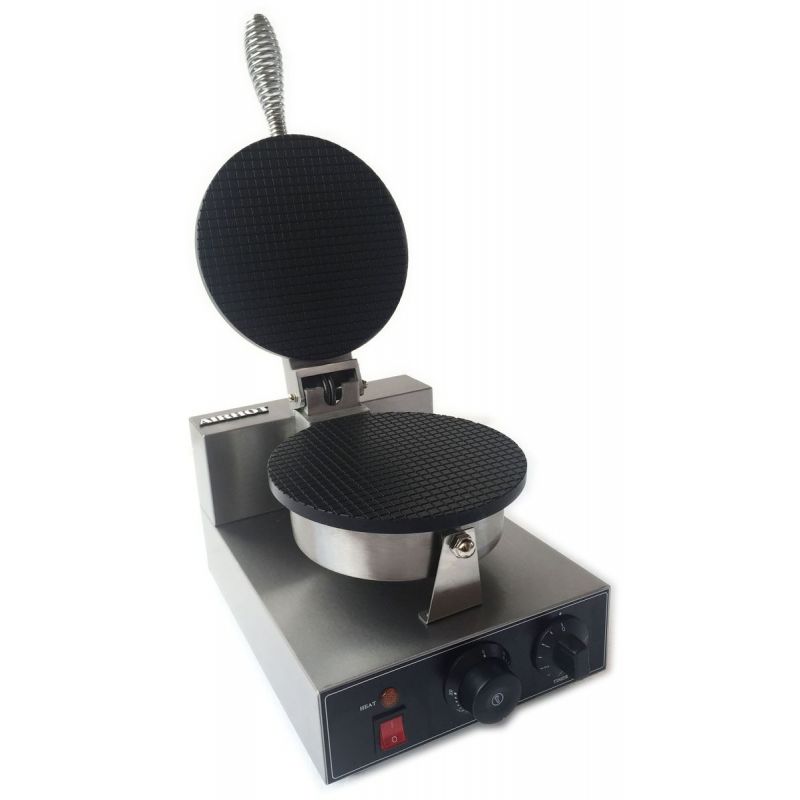 Вафельниця для тонких вафель AIRHOT WE-1S підходить для приготування хрустких вафель у ріжку (трубочці), які користуються попитом у кафе, фуд-кортах, кондитерських та вуличній торгівлі. Завдяки продуманій конструкції та якісним матеріалам модель забезпечує стабільний результат і високу продуктивність навіть за інтенсивної експлуатації: корпус виконано з міцної нержавіючої сталі, стійкої до зношування та легкої у догляді, а жарова поверхня з чавуну з антипригарним покриттям гарантує рівномірне пропікання тіста та легке вилучення готових вафель без прилипання. Пристрій оснащено зручним терморегулятором, що дозволяє точно налаштовувати температурний режим під різні рецептури, а вбудований таймер допомагає контролювати процес приготування, забезпечуючи ідеальну текстуру та золотистий колір кожній вафлі всього за 2–3 хвилини. Діаметр робочої поверхні 210 мм є оптимальним для формування акуратних тонких вафель завтовшки близько 3 мм, а дерев’яний конус, який входить у комплект, дозволяє швидко та зручно надавати виробам класичної форми ріжка. AIRHOT WE-1S не лише спрощує робочий процес, але й допомагає підвищити швидкість обслуговування клієнтів, що особливо важливо для бізнесу з високим потоком відвідувачів. Для збереження антипригарних властивостей і продовження терміну служби обладнання рекомендується перед кожним випіканням змащувати поверхню рослинною олією, після використання очищати її м’якою тканиною або щіткою від залишків тіста, а також уникати перегріву вище 250 C.Характеристики